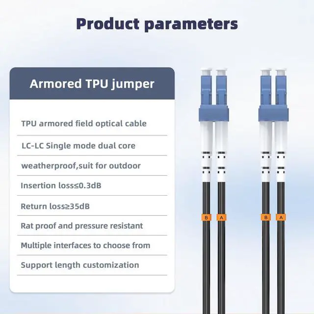 Armored patch cables have a metal sheathing housed in a robust outer jacket. Providing greater protection than standard cables, it enables installation in special environments with excessive dust, oil, gas, moisture, or even damage-causing rodents. All our products are 100% new fiber optic cable of carrier-class quality ,and can be fully trusted for your most demanding LAN/WAN applications, voice projects, or network deployments.