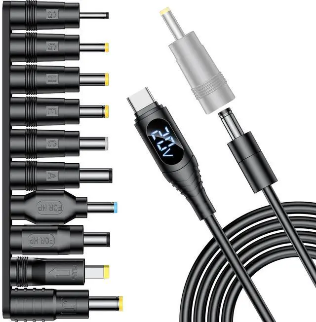 Smart USB-C to Universal Laptop DC Charger Kit | 100W PD Fast Charging | 10+ Adapter Tips