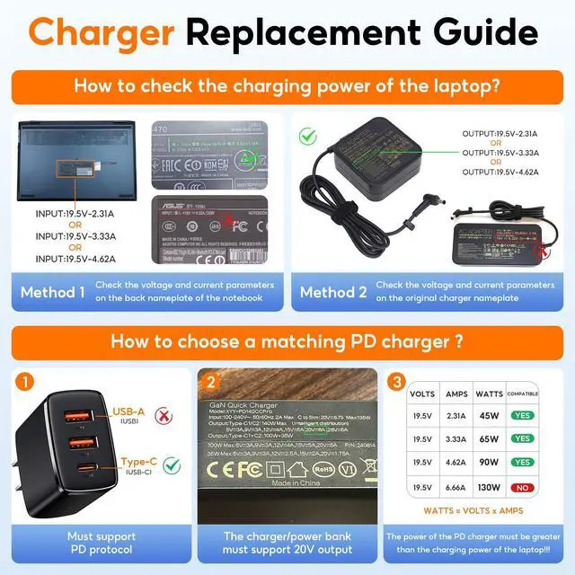 PD charger wattage = laptop's original adapter