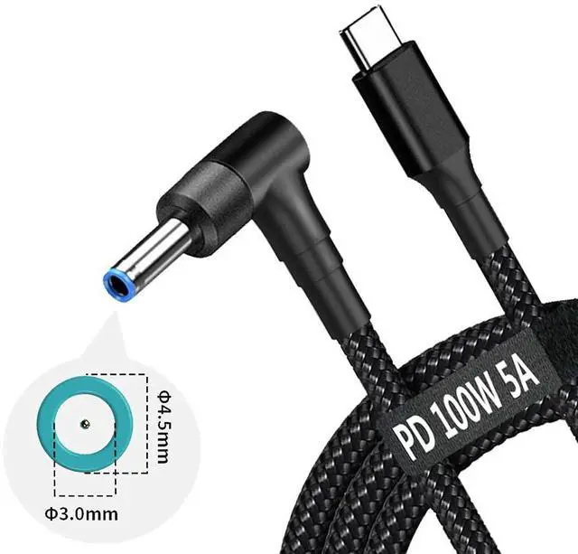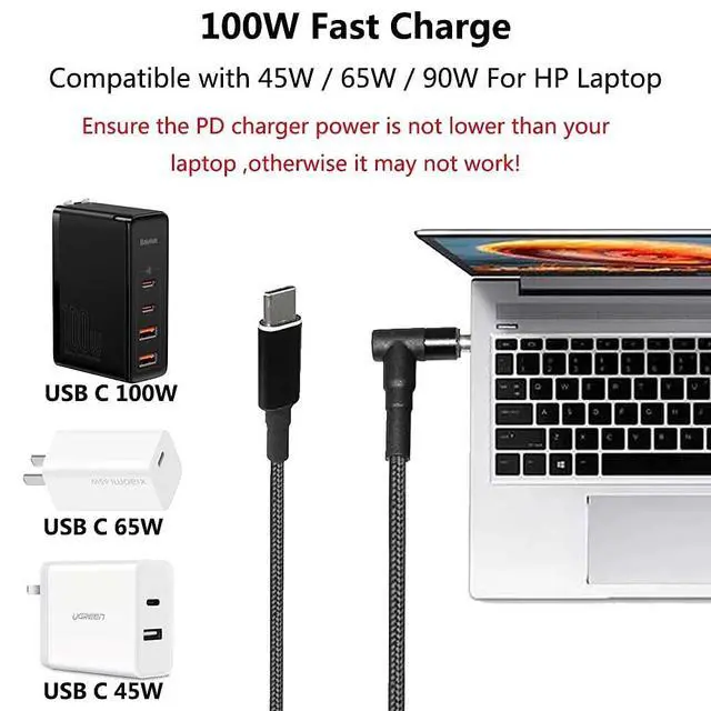 The USB C charging cable for HP Pavilion , elitebook , Stream touchsmart 11 , 13 , 14 , 15 Folio 1040 g1, ProBook 640 G2,650 Pavilion 15-E010US 15-E043CL 15-N019WM , Spectre ultrabook 13 notebooks etc. models Laptops with 4.5 x 3.0mm barrel & 0.6mm pin tip and 19.5V 3.33A /19V 4.74A /19.5V 4.62V 30W / 45W / 65W / 90W etc. quick charge connecting a PD AC power supply ; It's a 6.5ft long replacement cord and comes with a type-c male & 90 Degree Right Angle DC 4.5x3.0 mm jack plug connectors that help charging your laptop with PD fast AC wall charger adapter quickly.