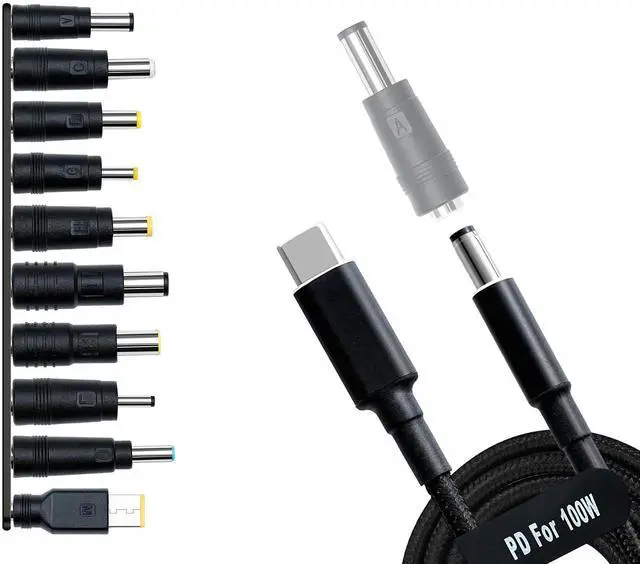 Universal Charger Cable PD Cord & 5.5x2.1mm Jack for MSI Acer Asus Thinkpad Lenovo Charging Connector Tips