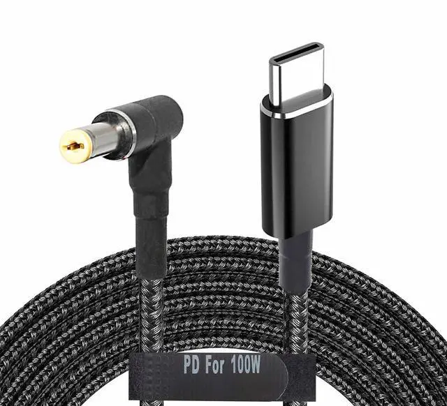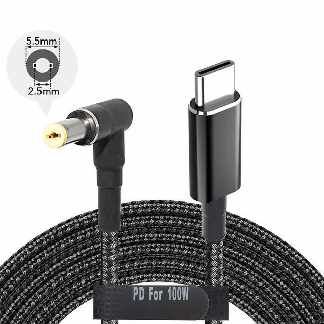 The 5525 USB C charging cable for Toshiba 1110 1130 1900 1950 C40 C50 C50D C55 , Asus X502CA X550C X550CA X550Z X550ZA X551C X551CA , 1005px A40 A42F A43 A45 A450C A52 A52F A53 A53E A53S A53SD A53T a53u A54 A54C A55 A55A A55V A55VD A73 A73E A73S B33E B43J B53 B53J D550CA D550M D550MAV F3S F50S F555LA F55U F75A F75V F75VD G1 G2P HX750JA K40 K40IN K42F K42J K43 K43SD K43SJ K43TK K45 K45A K45DR K45V K45VD K45VM K50 K501LX K501UW K501UX K50AB K50I K50ij K52 K52F K52FRF K52J K52JB K52JC K52JR K52JT K53 K53E K53S K53SC K53SD K53SM K53SV K53TA K53TK K53U K53Z K54 K55 K550LA k55a K55DR K55N K55V K55VD K55VJ K55VM K601J K60I K60IJ K61 K61IC K72 K72F K72JR K73 K73E K73S K73SV K75 K75DE K75VJ K84L K95VM M50 M50S M70 N10E N10J N10JH N43 N43SL N43SM N45 N46VJ N46VM N46VZ N50 IdeaPad IBM , HP , Dell , Acer ,Fujitsu , Compaq , MSI etc. laptops with a 5.5 x 2.5mm yellow barrel and support 19.5V 3.33A /19V 4.74A /19.5V 4.62V 30W / 45W / 65W / 90W etc. PC computers or devices connecting a PD AC power supply ; It's a 6.5ft long replacement cord and comes with a type-c male & 90 Degree Right Angle DC 5.5x2.5 mm jack plug connectors that help charging your laptop with PD fast AC wall charger adapter quickly.