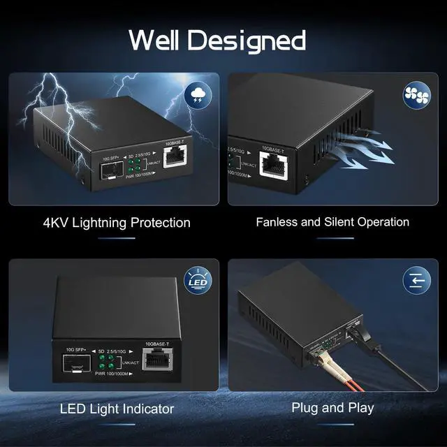 | Interface | 1*100M/1G/2.5G/5G/10Gbps RJ45 Port + 1*10Gbps SFP slot |