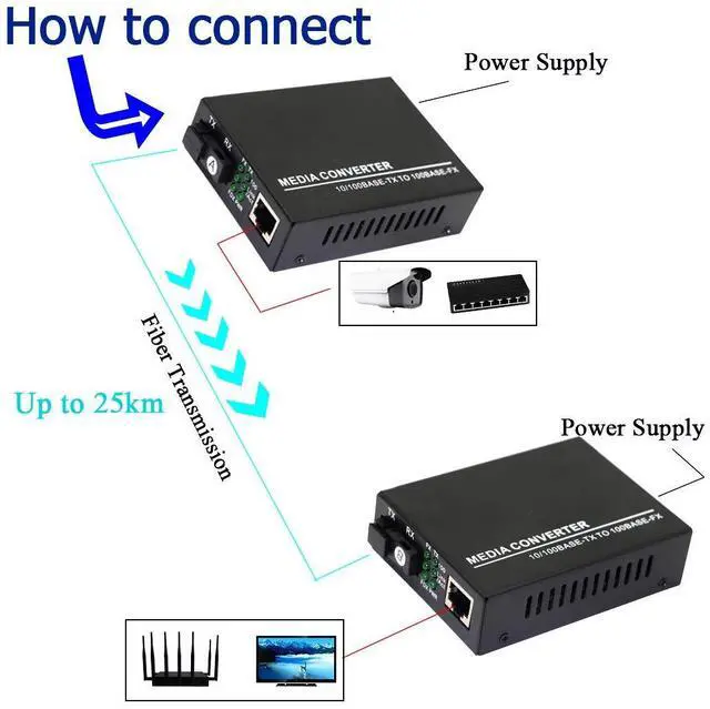 Long-distance transmission:*The optical fiber transceiver A and the optical fiber transceiver B are 100M single-mode single-fiber optical fiber transceivers. After pairing, they can exchange short-distance twisted pair electrical signals and long-distance optical signals Change and transmit long-distance signals through optical fiber