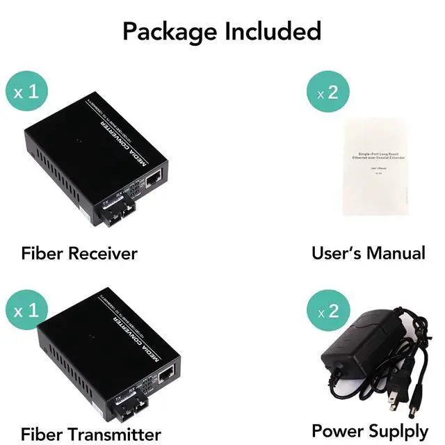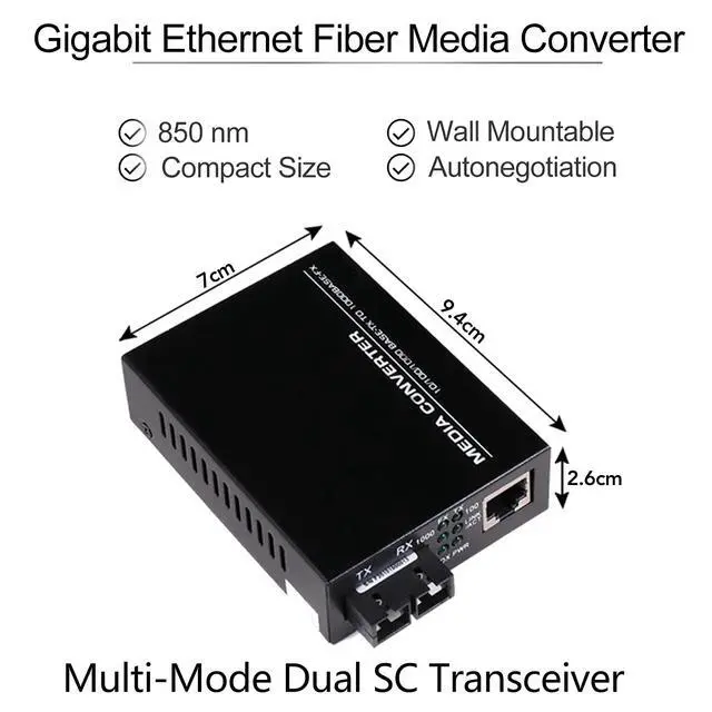 3.Fiber Type: Multi-Mode, Fiber Connector: Dual SC Fiber,Wavelength: 1310nm, Reach: 20km, Included Power Supply Weight: 0.35kg.