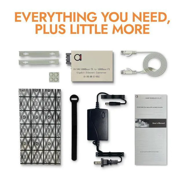 AN-UM-SMC-AS-J+MM-SFP-KIT Multimode Fiber Media Converter Will Automatically Detect 10 Mbit/s or 100 Mbit/s Fast Ethernet or 1000 Mbit/s Gigabit port
