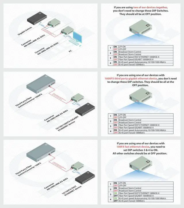 While in most cases you will have LAN switches, WiFi routers, or regular PC's connected to media converter UTP port - this versatile converter will still work with any standard Ethernet port device!