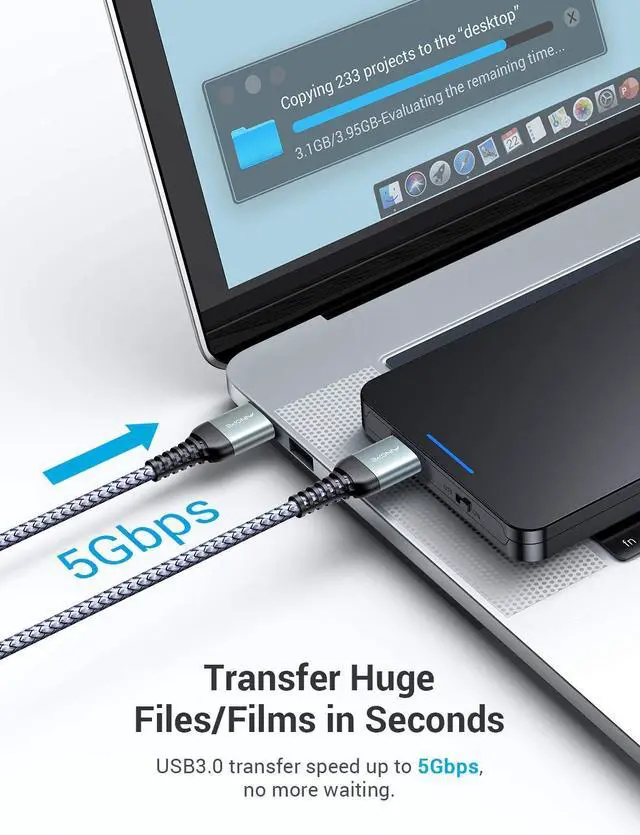 SUPER SPEEDY AND STABLE TRANSFER: USB 3.0 data transfer rate is up to 5 Gbps, 10 times faster than USB 2.0. Backwards are compatible with computer USB 2.0 and USB 1.1 ports; The tinned copper conductors of this usb a to usb cable, Aluminum-foil and braid shielding provides superior cable performance, error-free data transmission.