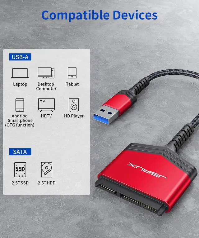 The USB 3.0 to SATA adapter cable lets you connect a 2.5" SATA hard drive or solid state drive to your computer through an available USB port -- the easiest way to upgrade the hard drive in your laptop by adding an external SSD via USB 3.0.