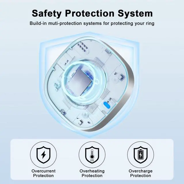 Safe Charging: Build-in muti-protection systems for protecting your ring from over current, over charging and over heating.