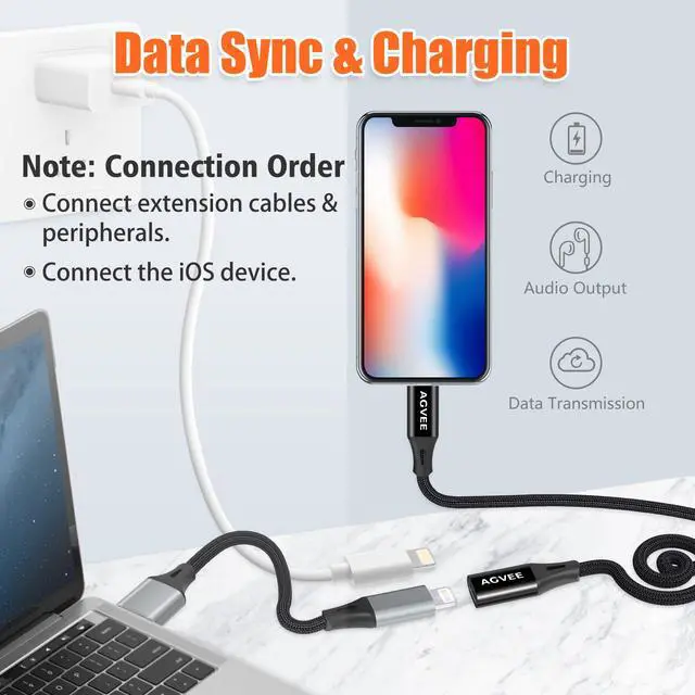 [Function] Support all lightning socket iOS device, connect lightning adapter accessories to iOS device: lightning to aux 3.5mm adapter, lightning ethernet adapter, extend the lightning charging cable and lightning earbuds