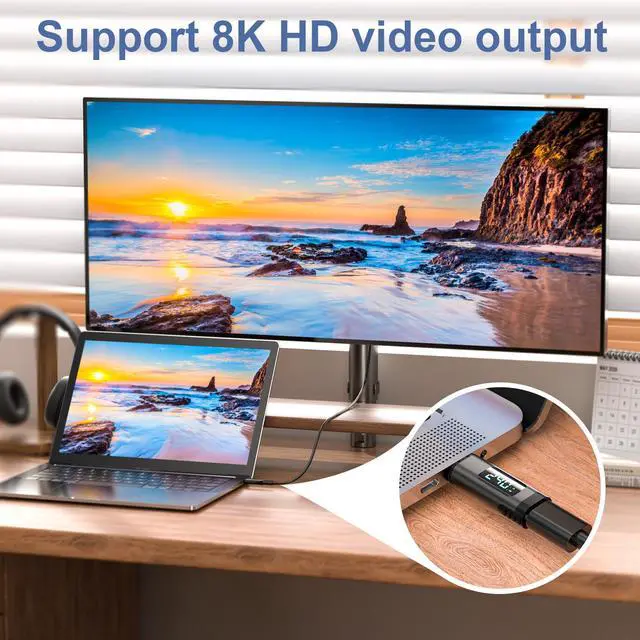 This adapter supports 8K @60Hz resolutions and USB 3/4 standard, blazing-fast speeds of up to 40Gbps.