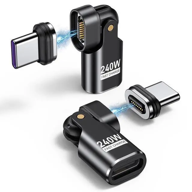 PD 240W Fast Charging The New 16PIN USB C magnetic adapter enables fast charging up to 240W, 48V/5A, providing enough power to power for your Mac-book or other Type C devices. The usb c 90 degree adapter supports ultra-fast transmission up to 480 Mbps, and all types of data can be transferred in seconds. Note that the actual charging speed depends on your cable/charger/charging block.
