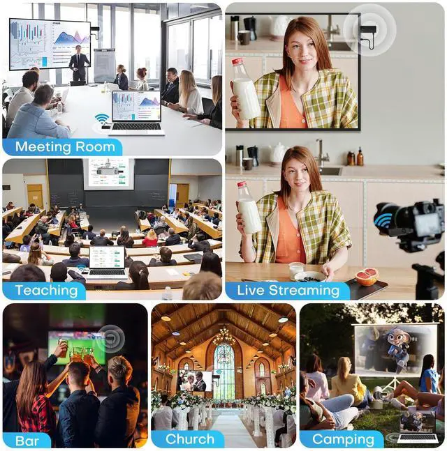 Our Wireless HDMI support 4K source devices to transmit content, 1080P high-definition resolution output screen. Help you create your own home theatre, but also can use the big screen efficient office. Whether it is a home theatre or conference room presentation, it is the perfect choice. Of course, wireless hdmi can also be used in schools, churches, bars, restaurants, gyms and other occasions through low-latency wireless transmission, with high-quality, professional image to enhance your live activities, so that you are no longer for a small screen or because of the screen's fixed position of the trouble, with the convenience of wireless HDMI to enjoy the visual feast of the big screen.