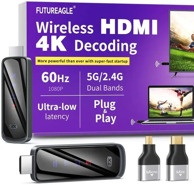 Cut the Cord with HDMI Cables: This HDMI wireless transmitter truly supports plug-and-play functionality. It can establish a connection in just 3 seconds without any cables, Wi-Fi, apps, Bluetooth, or complicated setup. Whether youre streaming movies at home, presenting PPTs in meetings, recording programs in theaters, playing courseware in classrooms, or monitoring your store, our Wireless HDMI Transmitter and Receiver delivers a free, clear, and smooth experience.