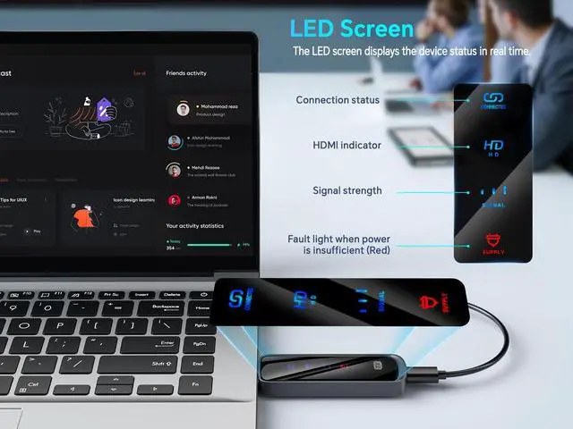 Silent Troubleshooting Expert: Our HDMI transmitter comes with a newly upgraded LED screen that clearly displays connection status, signal strength, output resolution and power status. You can easily keep track of the devices working conditionsenjoy the same reliability, transparency and controllability as wired connections. Eliminate the uncertainties of using wireless devices and enjoy greater peace of mind.