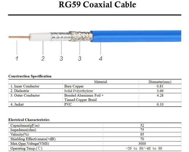 Dual RG59 Shield Cable that made of tinned copper braid and aluminum foil conductor.This sdi cable has better shielding and higher transmission rate, few signal attenuation. Ideal for long-distance connection devices.