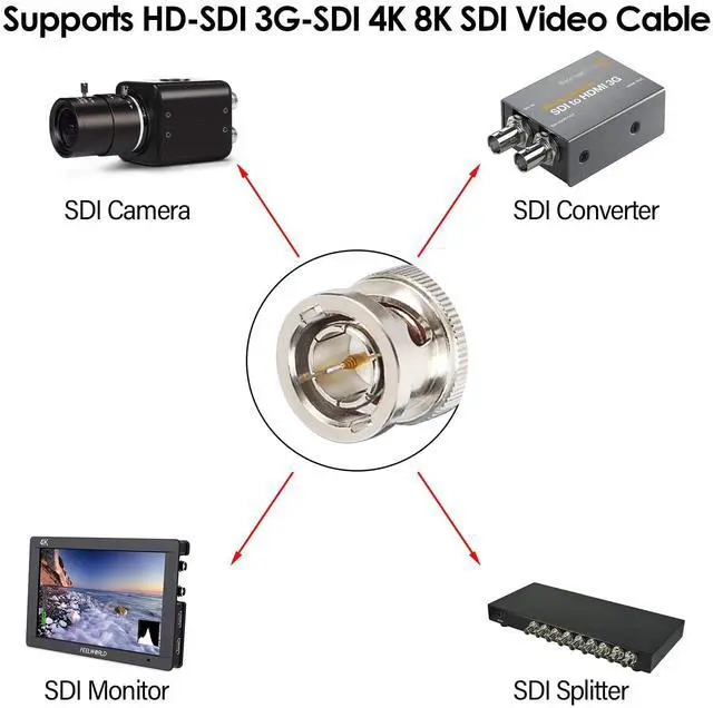 Supported Devices: HD-SDI Cable VCR/camera/marine/cb radio/CCTV monitor/sdi converter/video splitter/oscilloscopes. SDI cable designed to support the transfer of both rf and video signals, particularly 3G-SDI 6G-SDI quality video signals.