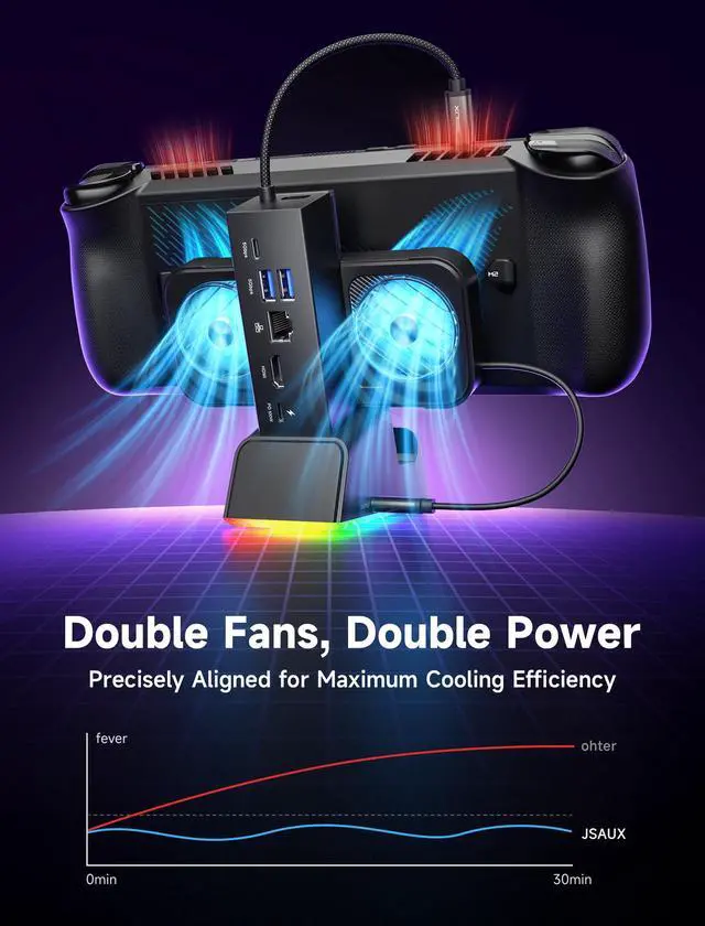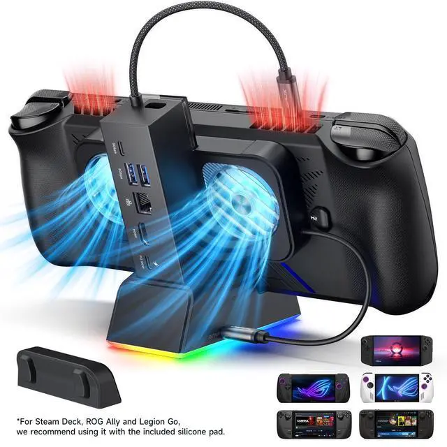 Docking Station for ROG Ally X/ROG Ally/Steam Deck/Legion Go, 7-in-1 ROG Ally X Dock with RGB Cooling Fan, HDMI 4K@120Hz, Gigabit Ethernet, Dual USB & USB C 3.0, 100W PD Charging - HB0705