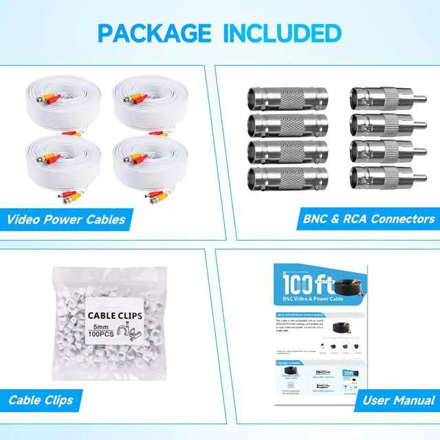 ![]() 4PCS-100ft-Black | ![]() 4PCS-100ft-White | ![]() 1PCS-100ft-Black | ![]() 1PCS-100ft-White | ![]() 1PCS-300ft-Black | ![]() 4PCS-100ft-Black-4K | ![]() 12V 2A CCTV Power Supply |