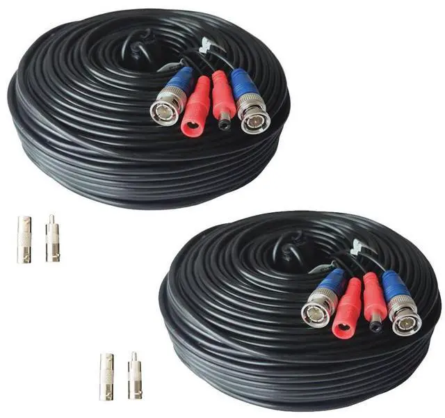 2 Pack 200ft BNC Video Power Cable Security Camera Wire Cord Extension Cable for CCTV DVR Surveillance System. The cable is made of pure copper material, PVC-45P molding, Weatherproof Cable Allows for Use Indoors and Outdoors, Transmit video signals and supply DC power for security cameras. Fit for all CCTV Surveillance DVR Camera System, 960H, 720P/960P/1080N/1080P, 3MP/4MP/5MP/4K, AHD/HD-CVI/HD-TVI /HD-SDI
