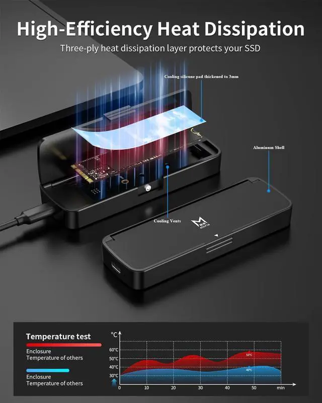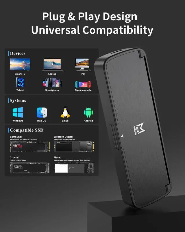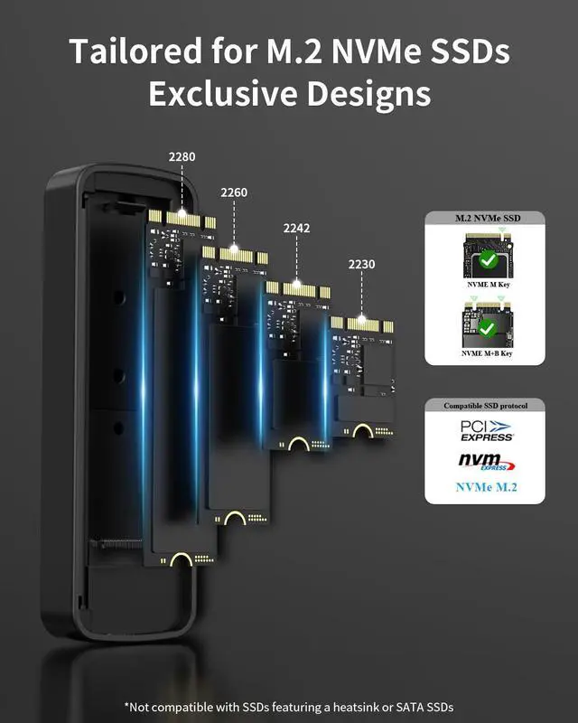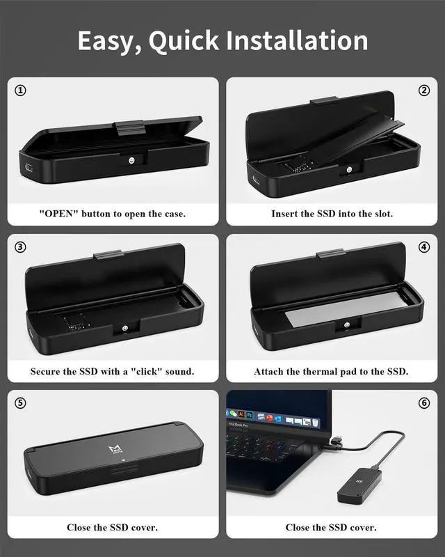 Prior to connection, open the product casing to check if the metal contacts of the hard drive are fully inserted into the slot. Note that this product only supports the NVMe single protocol; hard drives with the SATA protocol are not recognizable and cannot be used with it.