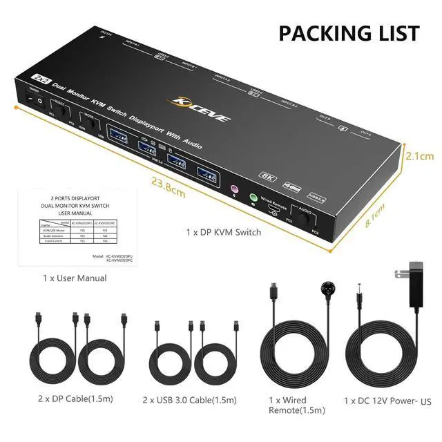 - Product name: DP KVM Switcher for 2 computers share 2 monitors
