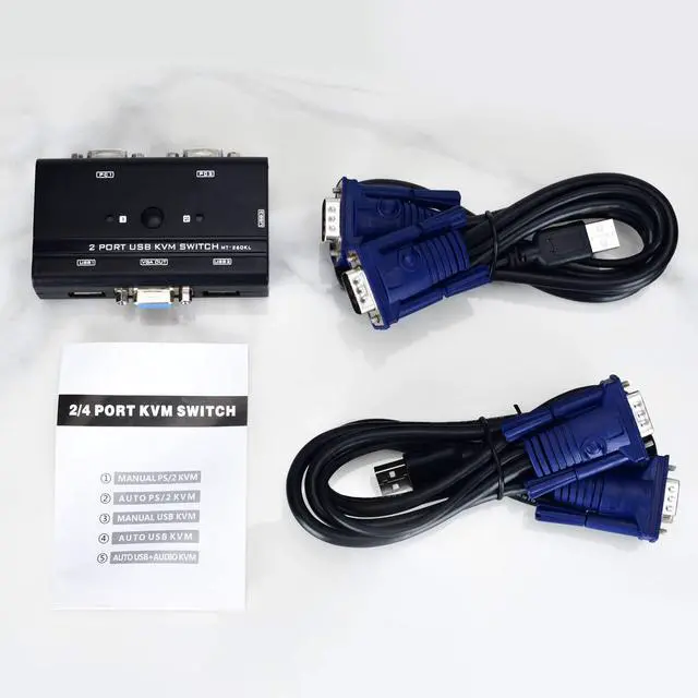 The device includes 2 KVM cables , VGA and USB cable are 2-in-1.