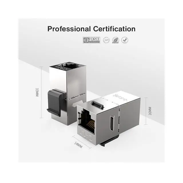 | Description | Cat6 RJ45 UTP Tool-Less Type Module Keystone Jack No Punch Down Tool Required | Cat7 RJ45 FTP Tool-Less Type Zinc Alloy Module Shielded Keystone Jack Adapter 10 Gigabit Modular Jack | Cat8 RJ45 FTP Tool-Less Type Zinc Alloy Module Shielded Keystone Jack Adapter 40 Gigabit Modular Jack | Cat7 2-Piece Metal Shielded RJ45 Plug Connector FTP 8P8C Modular Network Plug Connector (Wire Hole 1.45mm/0.057in) | Blank UTP/FTP Patch Panel, Wallmount or Rackmount Blank Patch Panel | Cat6A Cat7 Cat8 RJ45 Plug Connector Cover Modular Network Plug Connector Cap Cable Connector Boots |