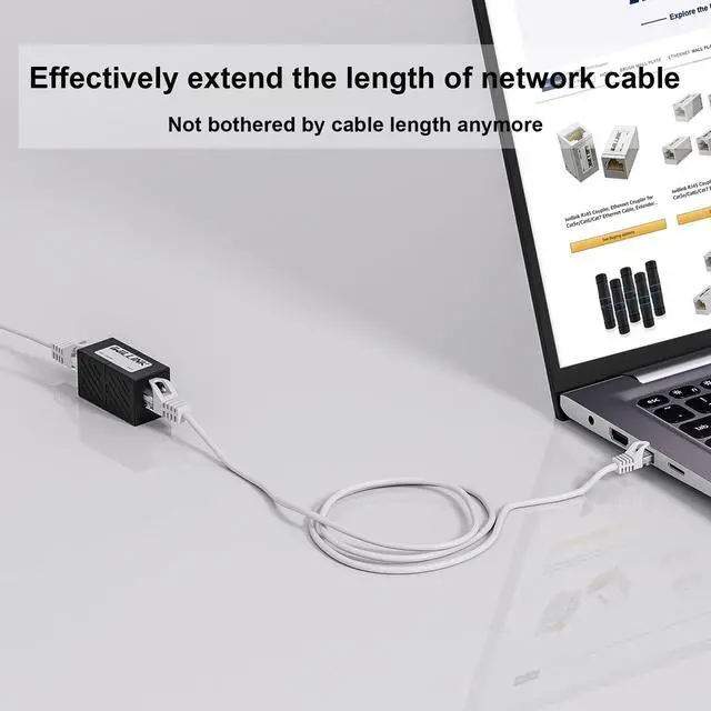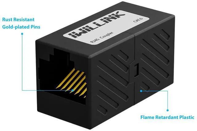 The iwillink Cat6 RJ45 In-Line Coupler requires no tools to connect RJ45 Ethernet patch cables. This coupler is an ideal solution for extending existing Cat5, Cat5e, or Cat6 cables that cannot be accessed or relocated. It is very useful for quickly testing and troubleshooting equipment problems.