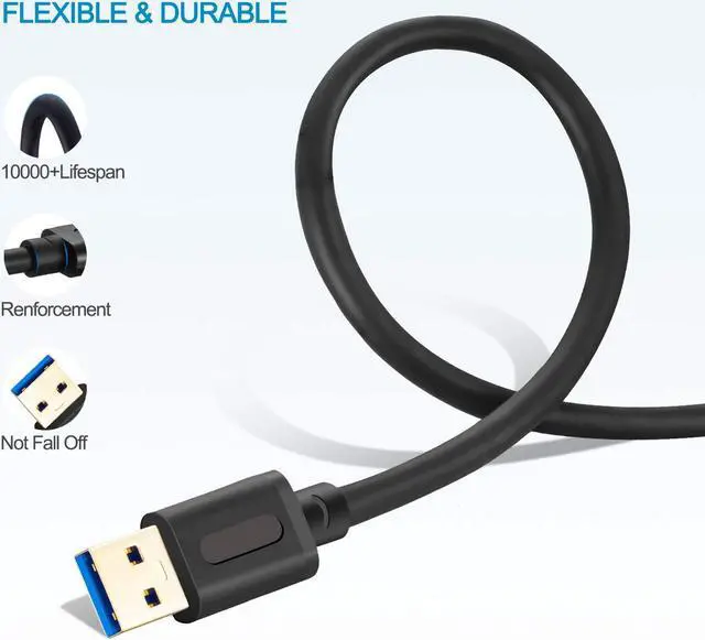 This Gold-Plated SuperSpeed USB 3.0 Type A Male to Male Cable support connecting various peripherals to a host computer (Mac or PC) with this USB 3.0 cable. The high-performance USB cable offers convenient connections to hard-drive enclosures, printers, modems, cameras, and other USB-compatible devices. The plug-and-play design means it's easy to install-simply connect each end, and you're all set to go. SuperSpeed USB 3.0 delivers 10x the data transfer rate of Hi-Speed USB 2.0 at up to 5 Gbps. The combination of gold-plated connectors, bare copper conductors, and foil & braid shielding provides superior cable performance, error-free data transmission, and fast charging speed.