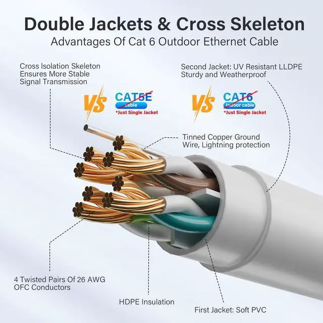 ![]() Adoreen Cat 6 Outdoor Ethernet Extension Cable 15 Ft White, High Speed Male t... | ![]() Adoreen Cat 6 Outdoor Ethernet Cable 75 Ft White, High Speed Heavy Duty Long ... | ![]() Adoreen Cat 6 Ethernet Cable 150 Ft-Black, Outdoor & Indoor Snagless Long Rou... | |