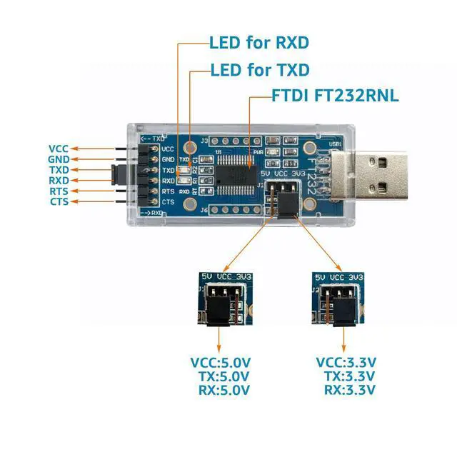 | Pins | CTS,RTS,RXD,TXD,GND,VCC |