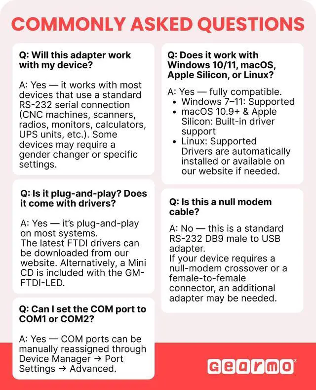 - GM-FTDI-LED16 USB to Serial Adapter