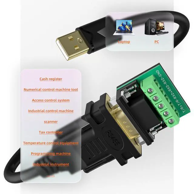 The USB to Serial RS232 DB9 cable is typically used in electronic products and devices that require connection to serial devices