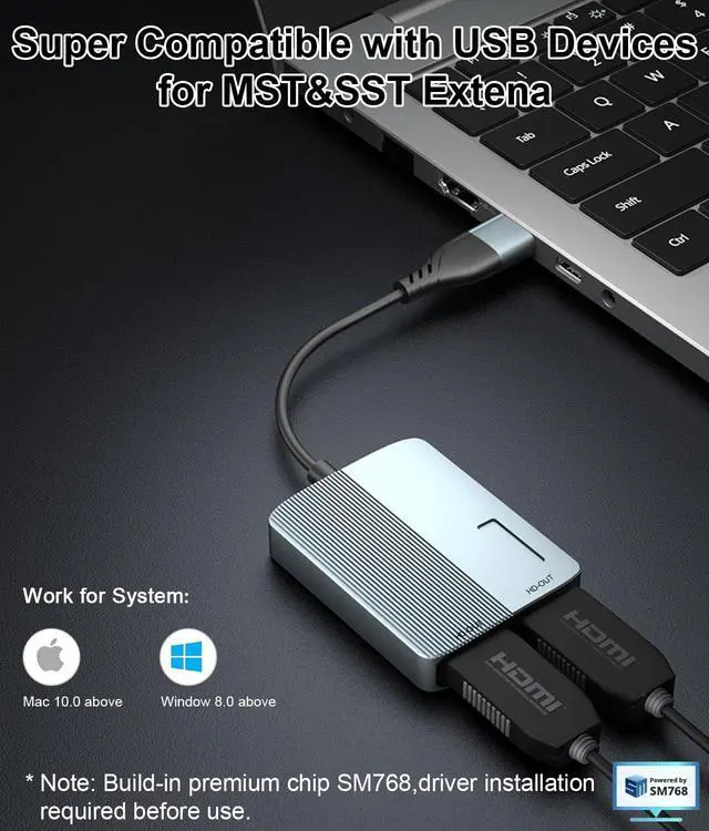 - Adding more displays to your workstation can be difficult, especially if your computer does not support MST or offer many external video ports. This USB to dual HDMI adapter features two video outputs, boosting your productivity by giving you more screen space to work from.