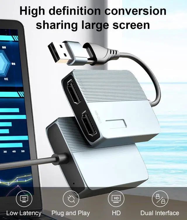 - Adding more displays to your workstation can be difficult, especially if your computer does not support MST or offer many external video ports. This USB to dual HDMI adapter features two video outputs, boosting your productivity by giving you more screen space to work from.
