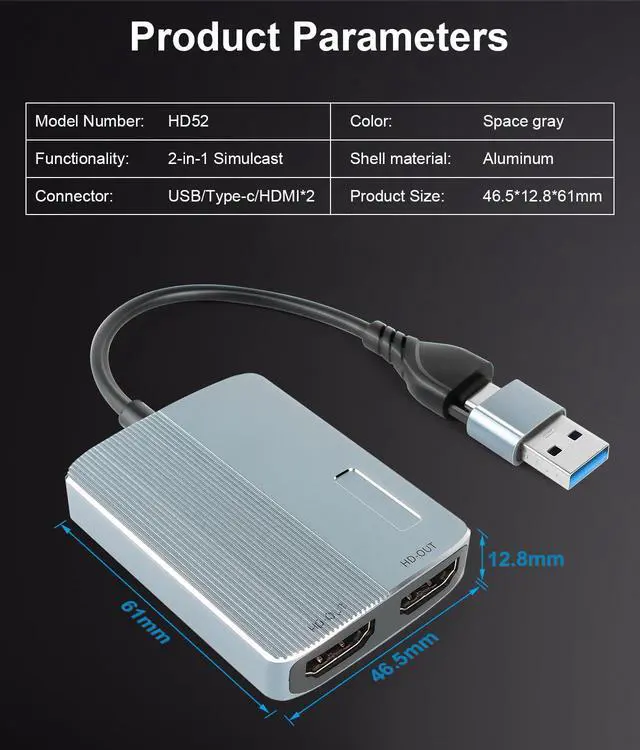 - USB Type C to Dual HDMI Universal Video Graphics Adapter for Mac and Windows, bring you Dual 1080P Visual Experience. With this USB 3.0 and USB C to Dual HDMI Adapter keeps things simple.