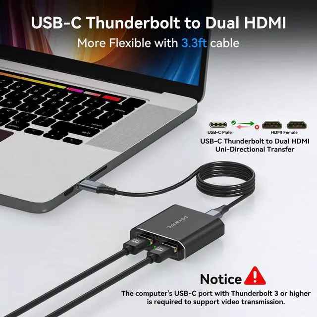 USB-C to Dual HDMI Adapter for 2 Monitors