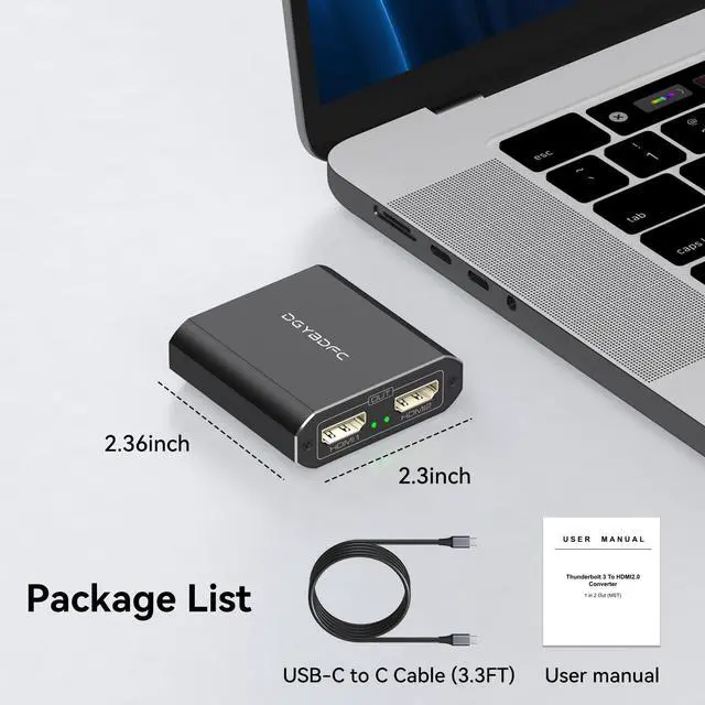 The dual HDMI adapter is small and can be easily carried. The aluminum shell ensures good heat dissipation and durability, allowing the adapter to maintain a stable working condition even in long-term operation.