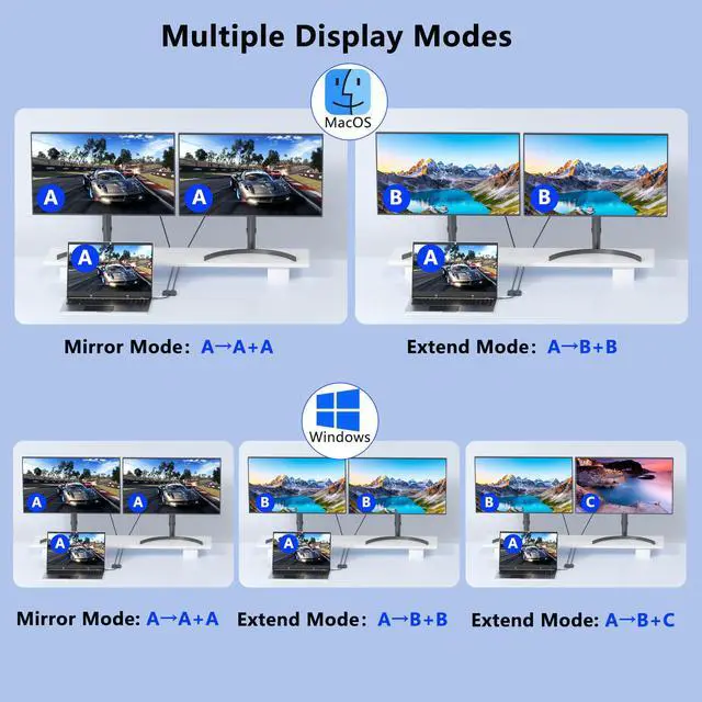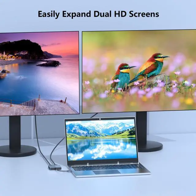 * To get Dual 4K@60Hz displays, require your USB-C port support DP Alt Mode 1.4, monitors and HDMI cable must support corresponding resolution.