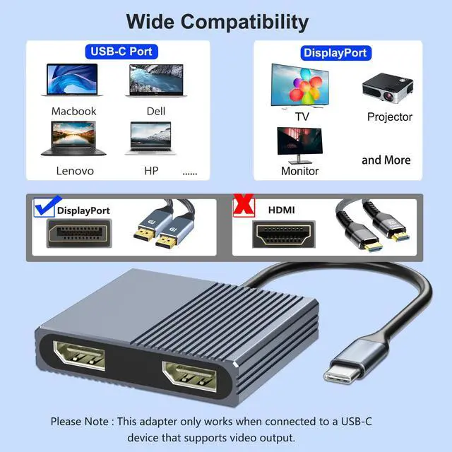 Note: NOT for all USB-C port laptop, such as this adapter CANNOT work with HP Pavilion/Lenovo IdeaPad, You need to confirm that your host device's C port supports video output or DP Alt Mode
