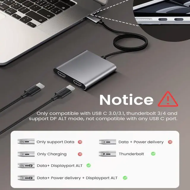 Extend or mirror content to dual displays in stunning resolutions up to 4K@30Hz, or streaming 4K@60Hz video on single monitor(must support DP 1.4 ).