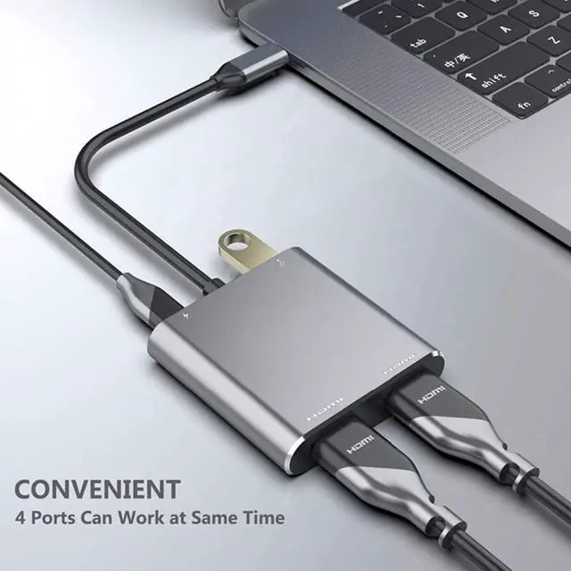 USB C to Dual HDMI Adapter, 4 in 1 USB Type C Hub with 2 HDMI /USB3.0 /PD charging, Dual Screen Display USB-C Docking Station For Windows, MacOS