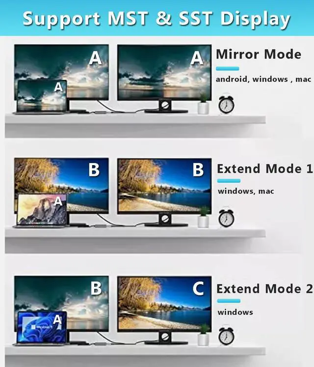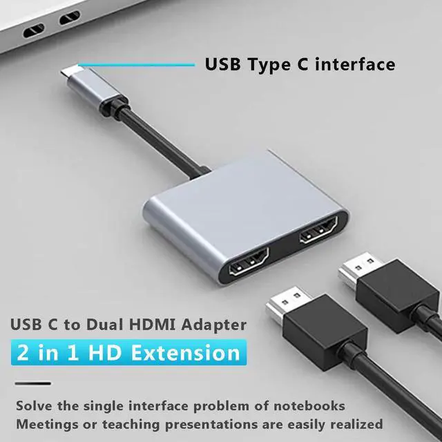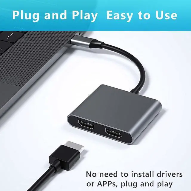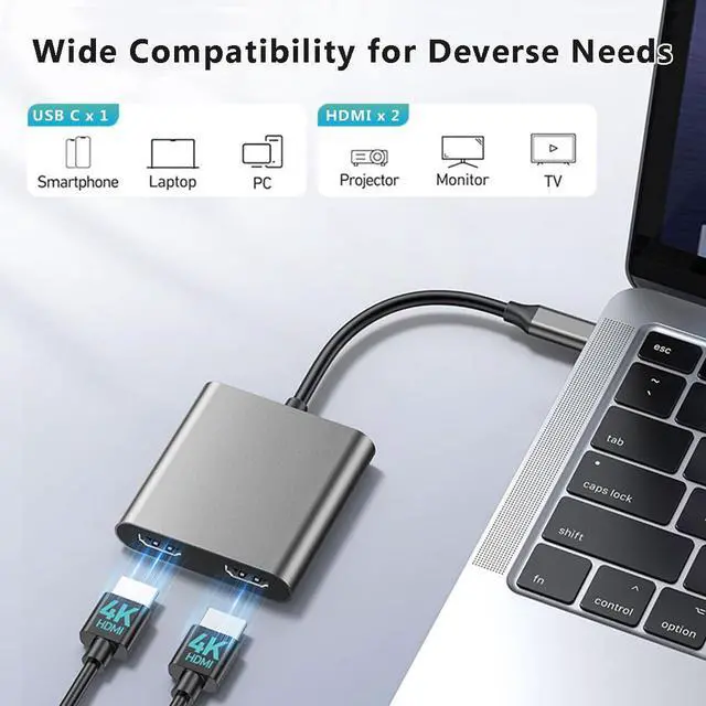 USB C to Dual HDMI Adapter 4K @60hz, Supports 4K@60Hz and Dual 4K@30Hz Type C to HDMI Splitter Extended Display for MacBook Pro, Dell XPS13/15, iPad Pro, iPhone 16 15, Samsung Galaxy S24 S23 and More USB C Devices[MST Mode (Extended displays) Only for Windows OS]