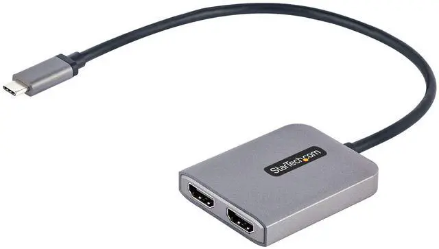 This USB-C to HDMI video splitter connects up to two additional displays in extended or mirror mode.