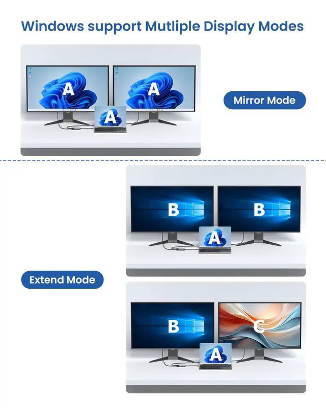 | Set Mirror Mode or Extend Mode | For Windows laptops: Click the Graphic Settings or Win+P to choose mirror or extend mode---(If the display 3 is not display, Right click desktop>Graphics Settings > Select One or More Active Displays).---For MacBook laptops: Apple logo-System Preferences-Displays-Mirror Display(Yes or Not) |