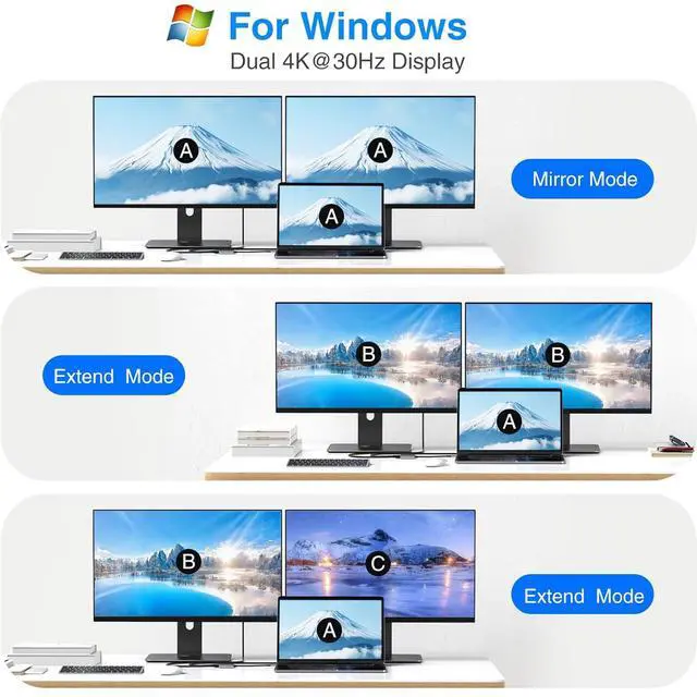 3.The single display can support up to 4K@60Hz, but in MST mode, dual displays can only support up to 4K@30Hz.