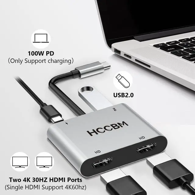 This 4 IN 1 USB C To Dual HDMI Adapter allows you to extend multiple different monitors. And you can use 2 monitors, support 4K 60Hz. It is an ideal gardget for your new usb-c thunderbolt 3 laptops and a great gardget for your working or studying or entertainment. With advance chip, provide you more stable performance.