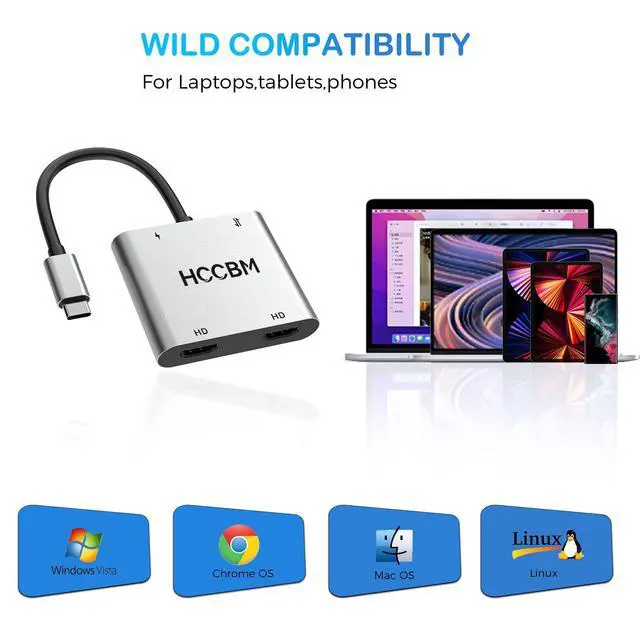 2 HDMI Multiple Monitor USB C Adapters for Windows System Laptops